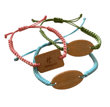 Bracelets RFID en tissus personnalisables avec fermeture ajustable. Choisissez la couleur du tissu, la forme (rectangle, ovale ou rond) et l’essence du tag en bois (voir les différentes essences ici), puis personnalisez-le par gravure laser ou impression couleur.